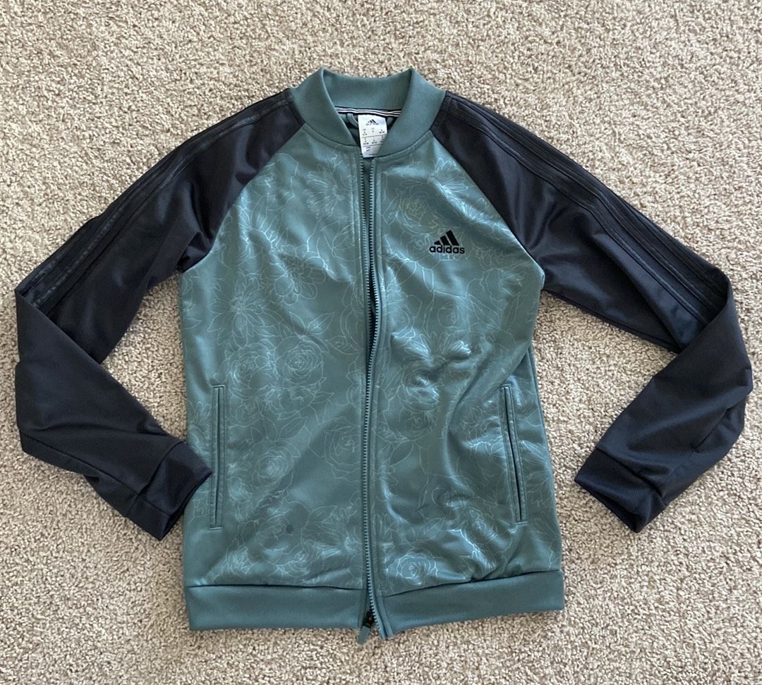 In excellent condition. Washed. Zip closure. Size S and fits Xs nicely and S. Length 25”. Chest 16”. Machine wash cold. 100% polyester