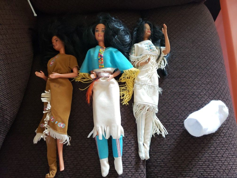 I have three Native American barbie dolls for sale. Asking $50/obo for all three. They have been in our attic and could use a good cleaning. The one in brown is missing her earings, ring, and one shoe. The others have all earings, rings and boots.