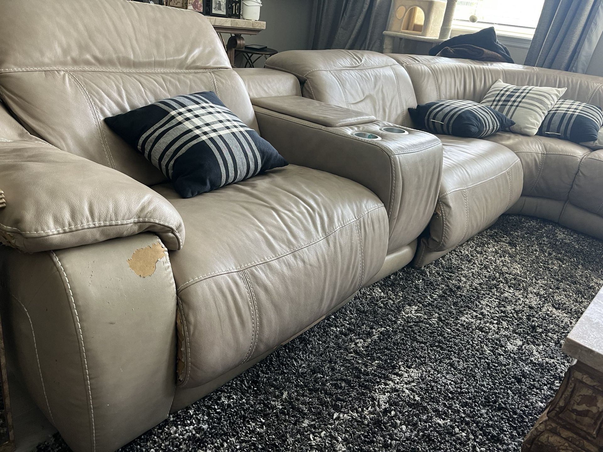 Beige leather sectional with 3 recliners paid $4500 for it, first $500 gets it