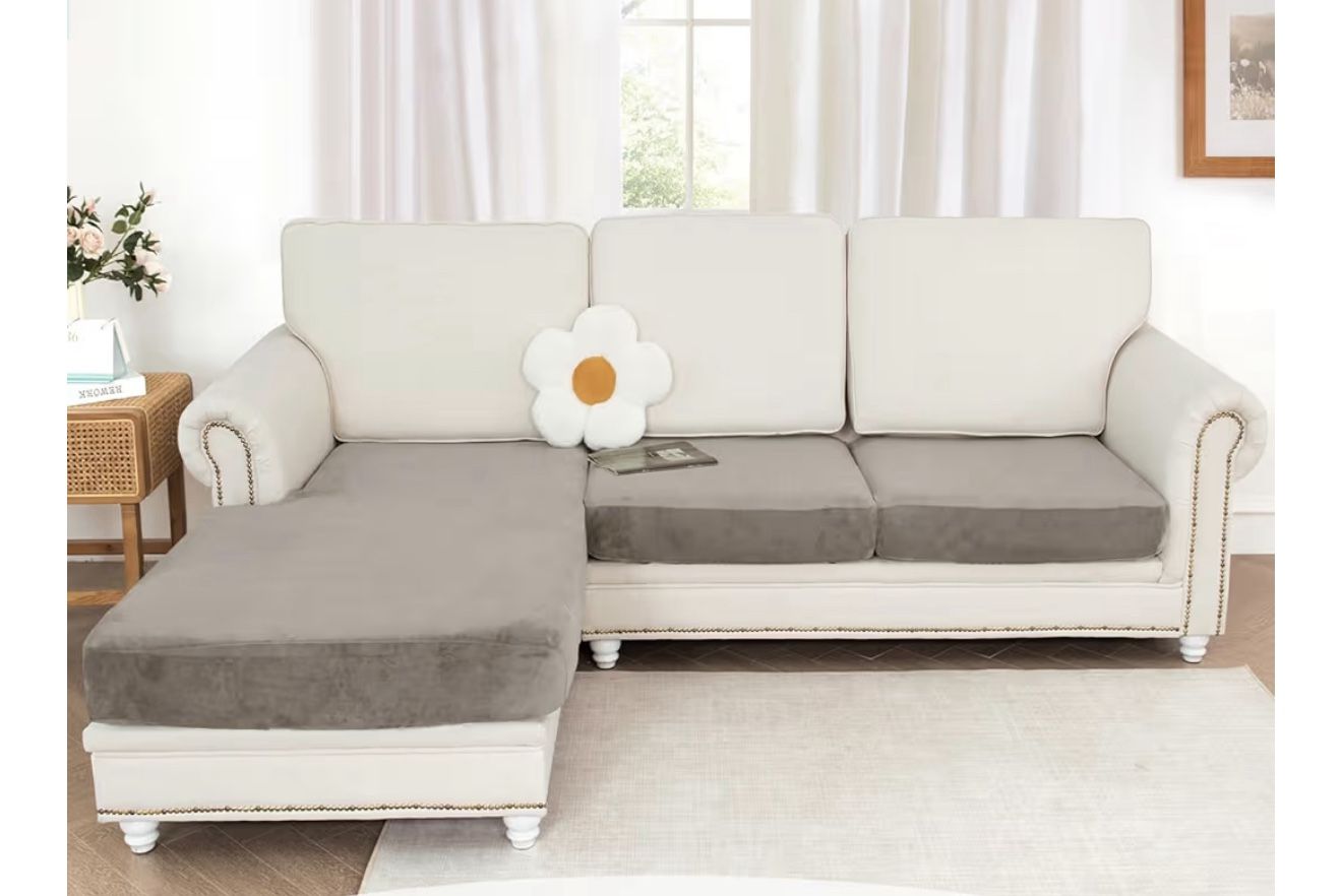 Waterproof couch cushion covers. Thick velvet sectionsl couch covers. 3 pieces separate L shape couch covers. 2 Seater plus 1 chaise Regular $33.99 11.5” D x 11.5”W x 3” H