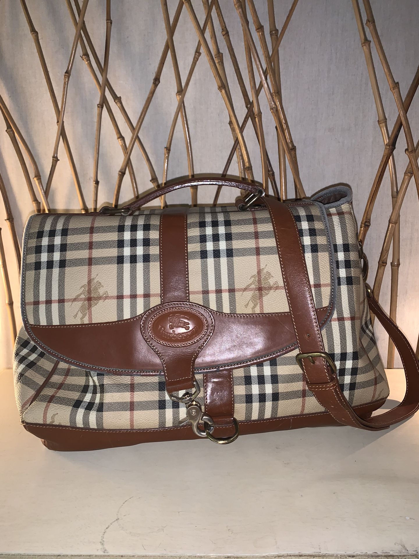 Vintage Authentic Burberry Leather Messenger Bag. Some Wear on stitching otherwise pristine.