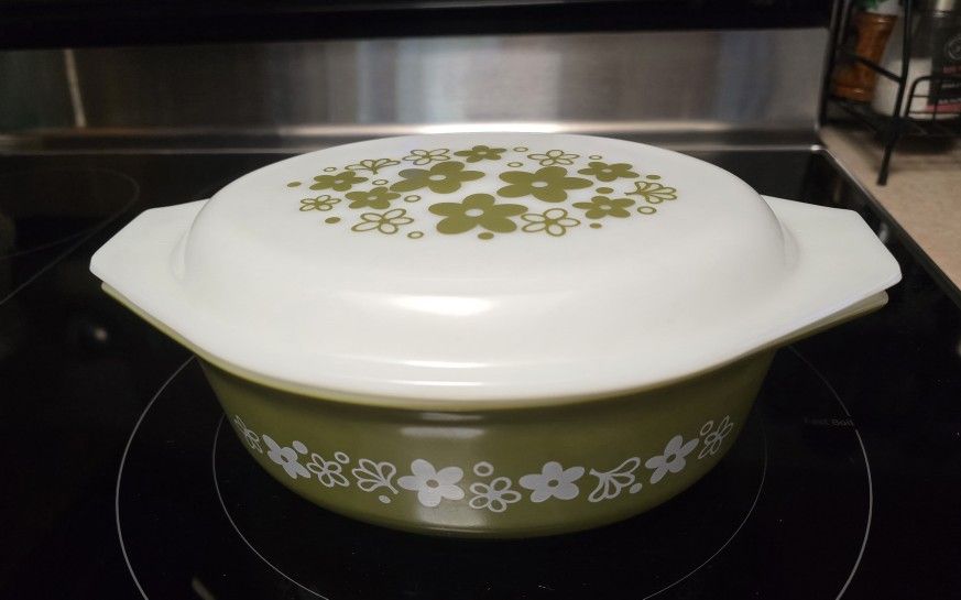 Vintage Pyrex "Spring Blossoms Crazy Daisy" 043 1-1/2 Qt Casserole Bakeware Dish with Lid
