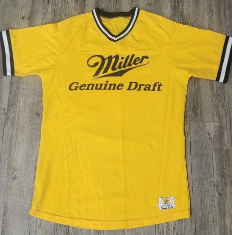 Vintage Macgregor sand-knit Miller Genuine Draft Jersey size Medium, in good condition. There are a few barely noticeable stains shown in pics. The measurements are in the pictures. Please check out my other items. PICK UP IN GRAND PRAIRIE SHIPPING AVAILABLE