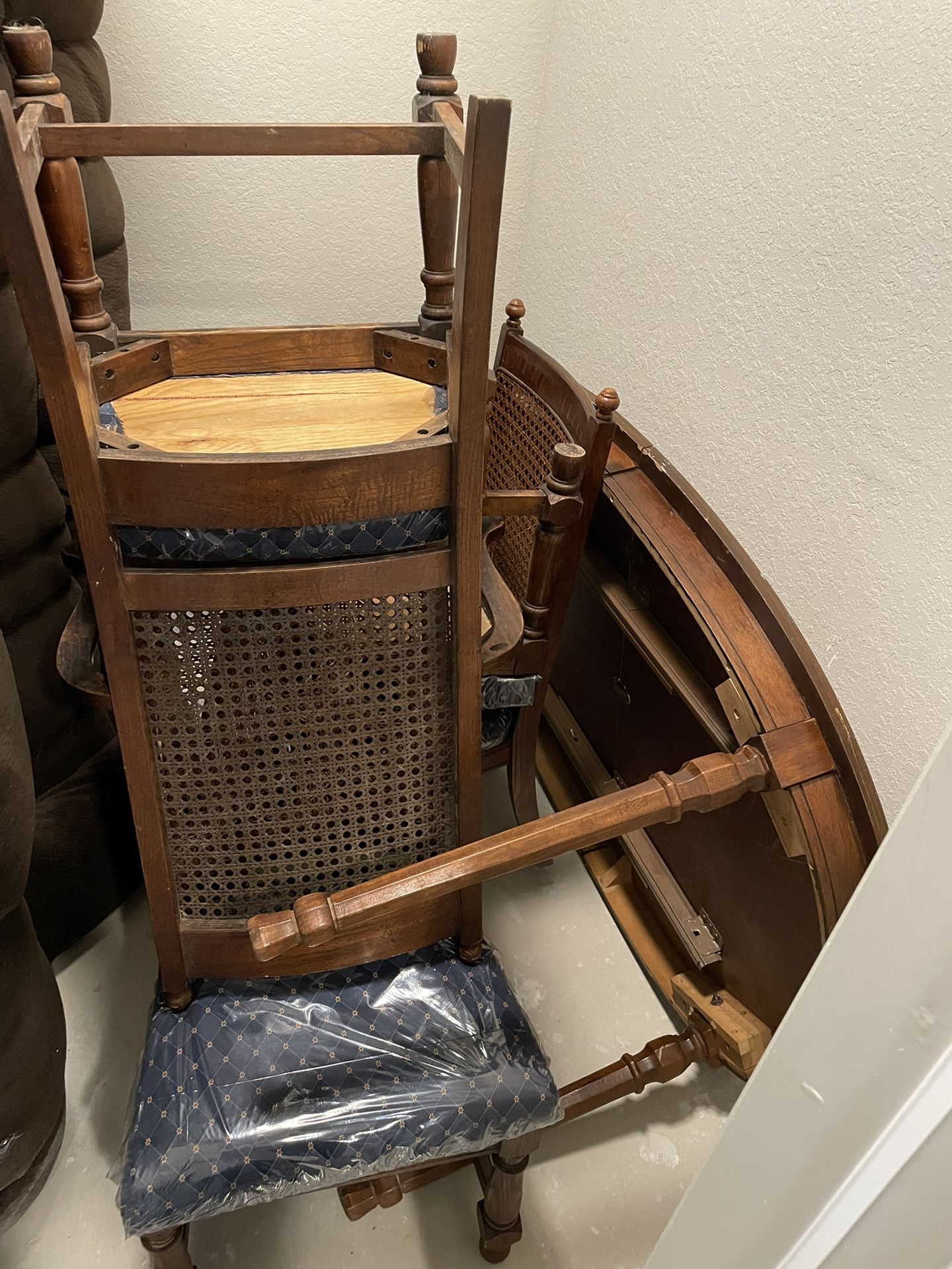 Nice table, 4 chairs w/wicker backs, and 2 leaves. Listing at a lower price because it still needs to be cleaned. Will take $50 off if picked up by Sunday.
