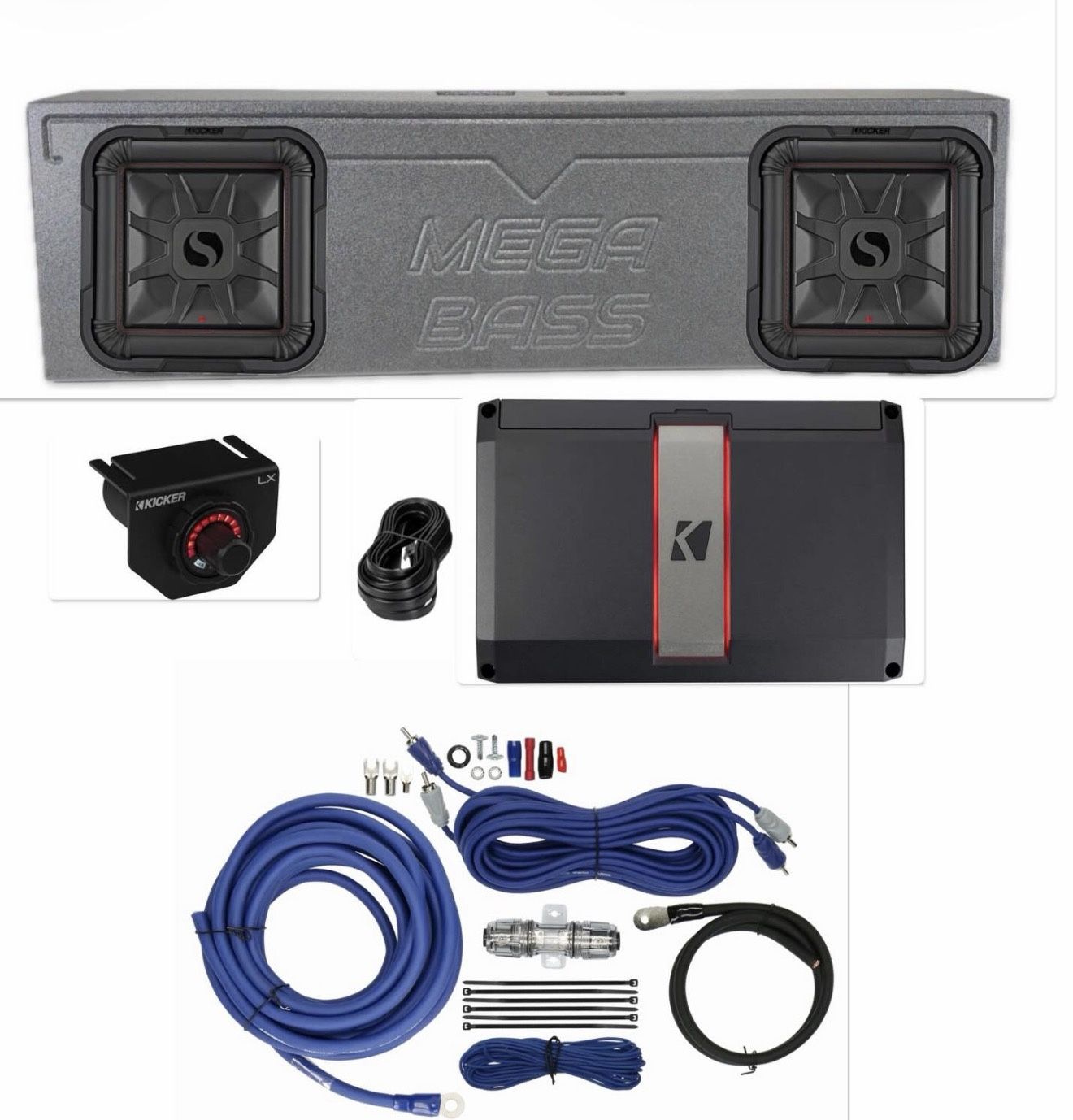 $1700 Firm New Installed Fit SINGLE OR REFULAR CAB TRUCKS 2 doors PORTED BOX MEGA BASS 2 12” KICKER L7t shallow series subwoofers 2400 watts Kicker lx series amplifier Comes with bass knob control Amp kit wires Installed Keywords alpine kenwood kicker pioneer Rockford Memphis mtx jl audio hifonics sundown audio skar audio ds18