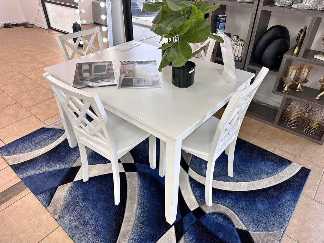 I am selling a cheap dining set, brand new in its box. Available in white and brown. HABLO ESPAÑOL.