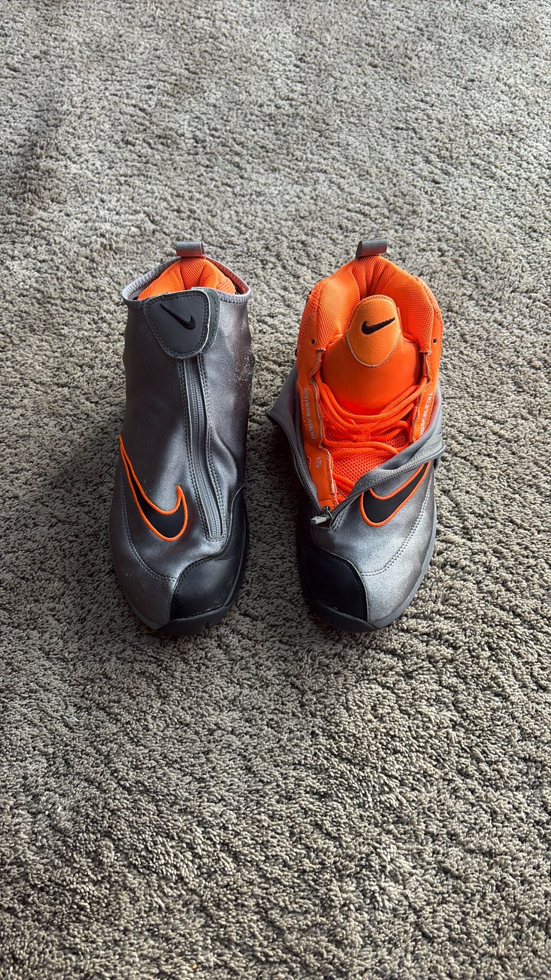 Nike glove shoes, silver/gray exterior cover with orange and black tennis shoes men’s size 11 good condition no box.