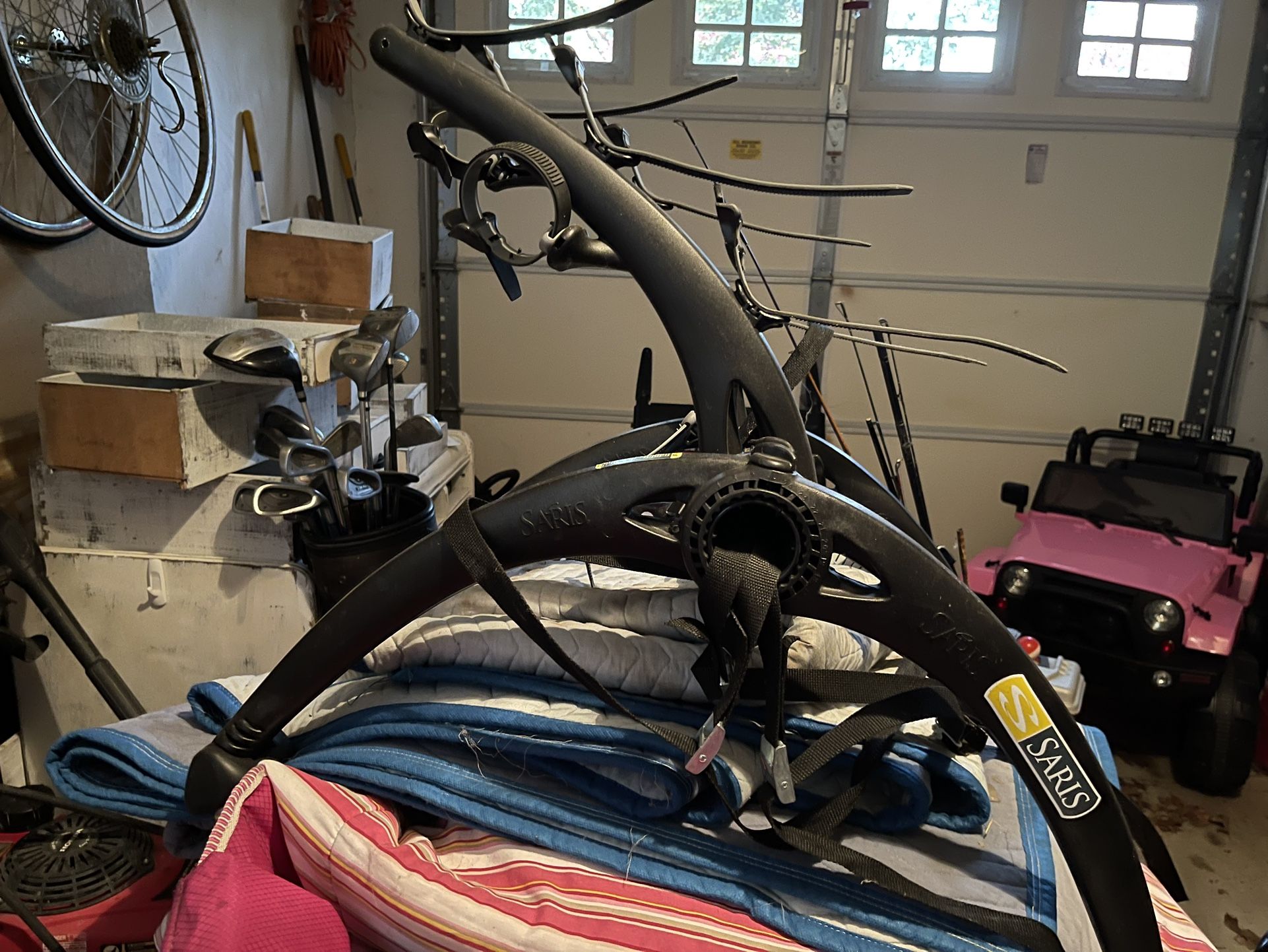 Selling my Saris bike rack, have to mine and don’t have space for it. Not used many times before I got a Jeep so it’s in great condition! Fully adjustable and easy to install, great bike rack!