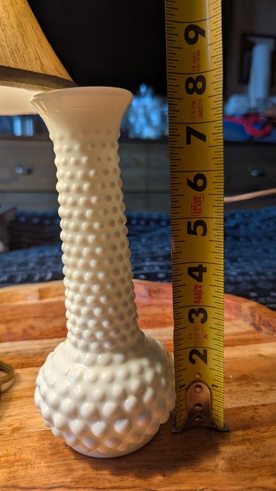 A beautiful collectible from the mid-20th century: this vintage [E.O. Brody Milk Glass Hobnail Bud Vase]() (model M-2000) was made in the U.S.A. by the E.O. Brody Co. and features a classic hobnail texture in crisp milk-white pressed glass. It stands approximately 7 ⅝″ tall and measures about 3 ⅜″ in diameter at its widest point. Condition is excellent: no chips, no cracks, clean and coming from a non-smoking home. The vase’s combination of the hobnail pattern with the milk-white glass gives it a timeless look—whether for a collector of vintage pressed glass, milk glass, hobnail pattern, bud vases or classic mid-century décor. This piece would make a thoughtful gift (especially with the holidays approaching) for someone who appreciates vintage glass, farmhouse style, cottage-core décor or simply a clean, elegant accent for a shelf, mantle or side table. $25 OBO Pickup in Snohomish