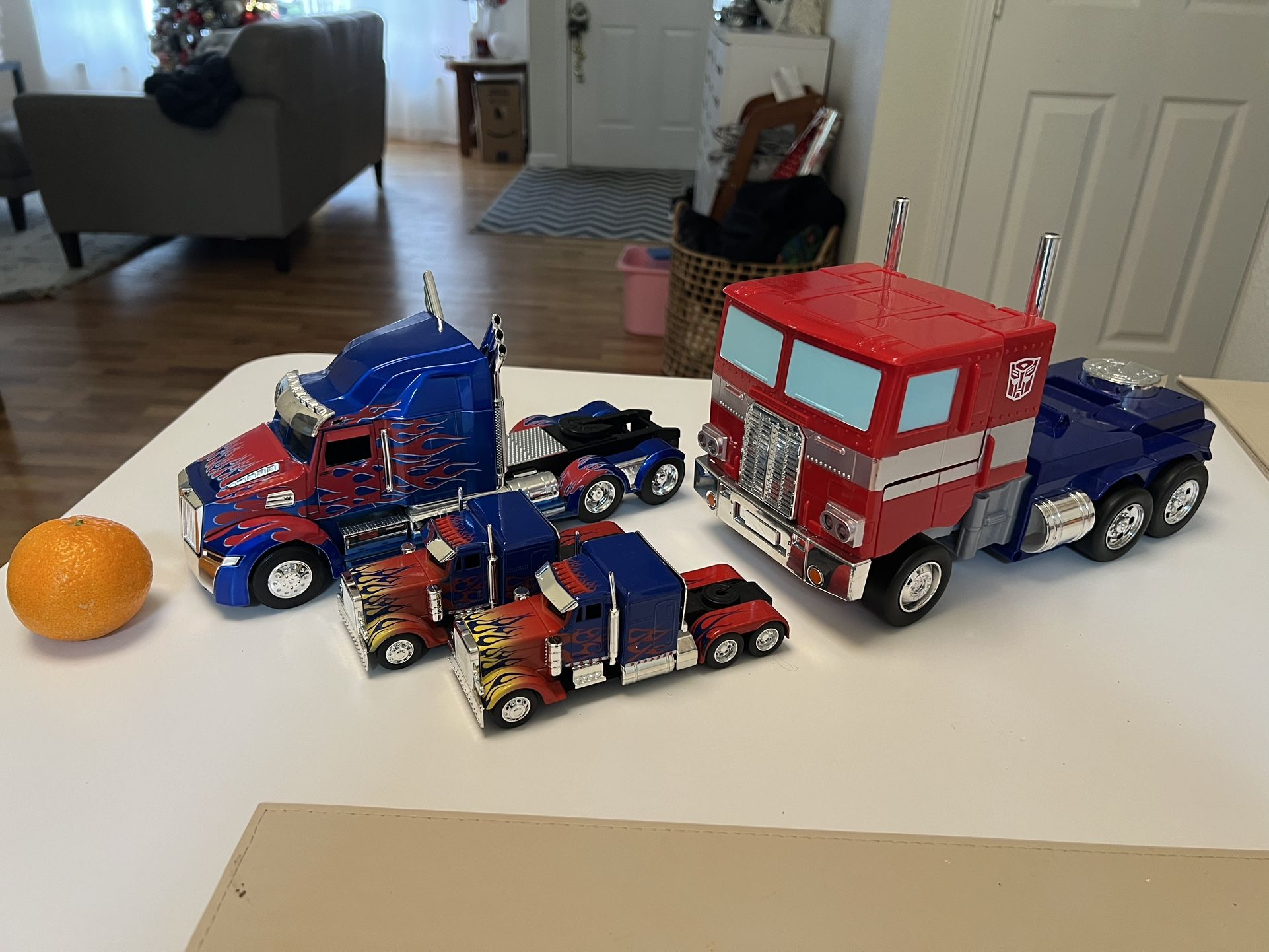 Jada toys 1/24 Optimus 2x Jada toys 1/32 Optimus Large g1 style Optimus toys. Only selling together thanks.