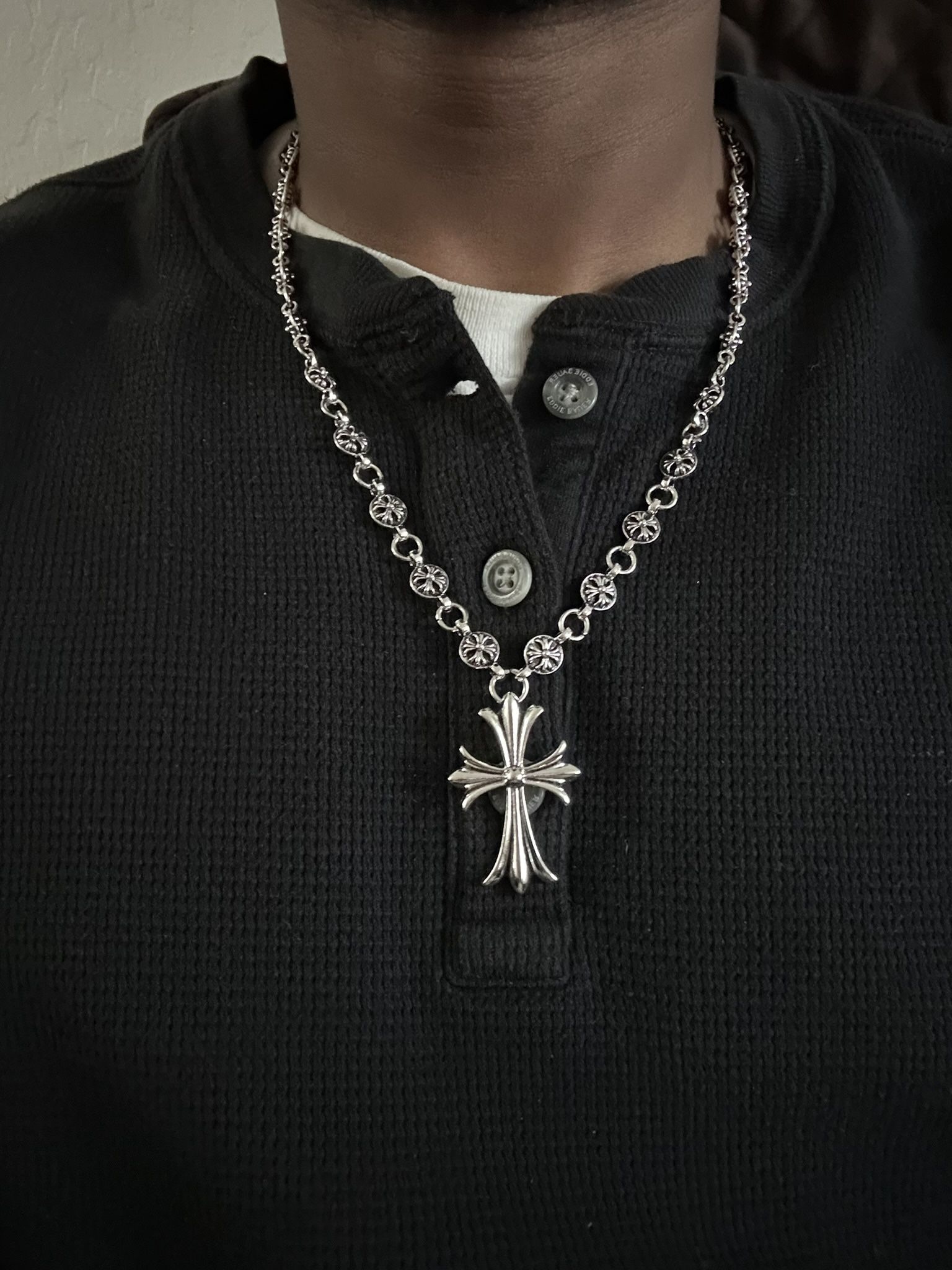 Chrome Inspired Chain Necklace *measurements shown in pictures* Length: 12 & 1/2in - stainless steel - bar and circle clasp - 55 cm long & 27.6 grams
