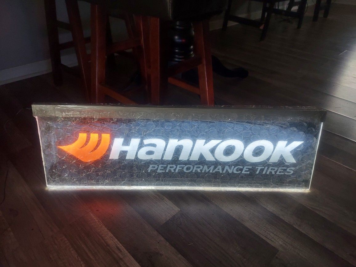 hello, selling my Hankook neon sign don't need any longer, it is brand new still in wrapper as seen in the pics, very nice for garage or bar area