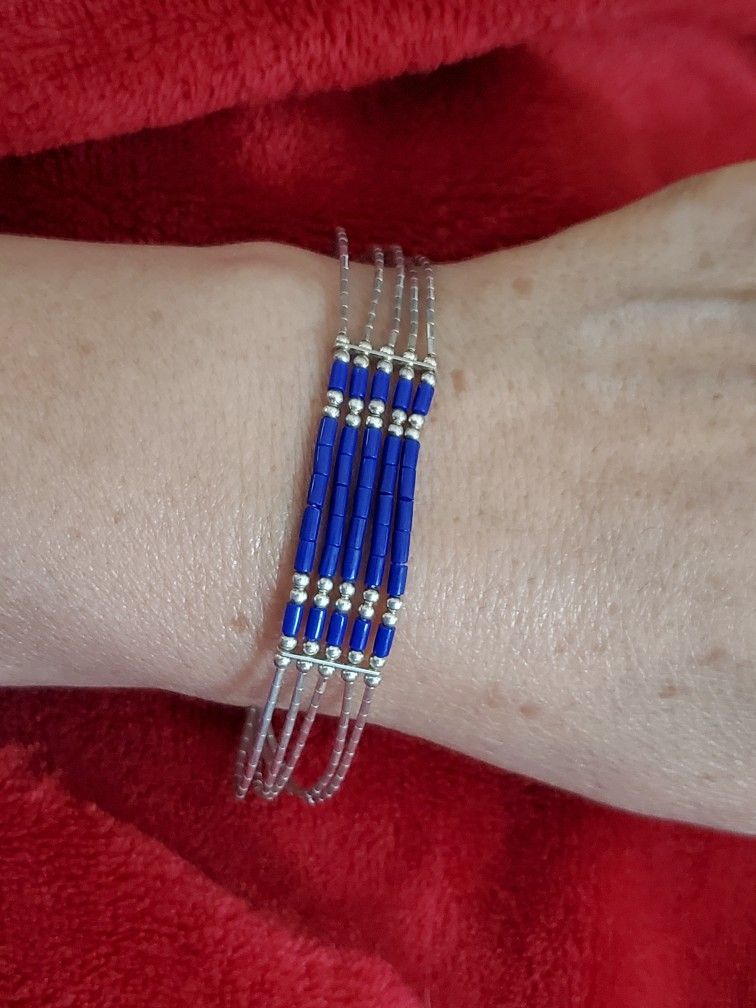 Liquid Sterling Silver And Sugilite 5 Strand Bracelet And Anklet Set. Pre-owned in great condition