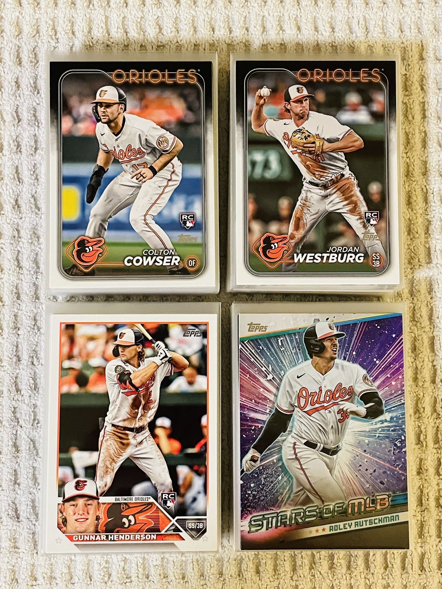 Baltimore Orioles 100 Sports Card MLB Baseball Card Team Lot! All cards in mint condition! Rookies, prospects, All-Stars, HOFers, inserts, parallels, exclusives, variations & more! Mix of Series 1, Series 2, Update Series, Topps Chrome, Bowman, Upper Deck & more! Gunnar Henderson, Adley Rutschman, Colton Cowser, Jordan Westburg, Ryan Mountcastle, Cedric Mullins, Anthony Santander, Ryan O’Hearn, Austin Hays, Jorge Mateo, Kyle Stowers, Ramon Urias, Grayson Rodriguez, Kyle Bradish, Cole Irvin, Felix Bautista, Yennier Cano, Dean Kremer, Keegan Akin, Tyler Wells, Cal Ripken Jr, Eddie Murray, Brady Anderson, Rafael Palmeiro & more! $25 for the lot! Local pick up & shipping available. Message for details. Thank you!