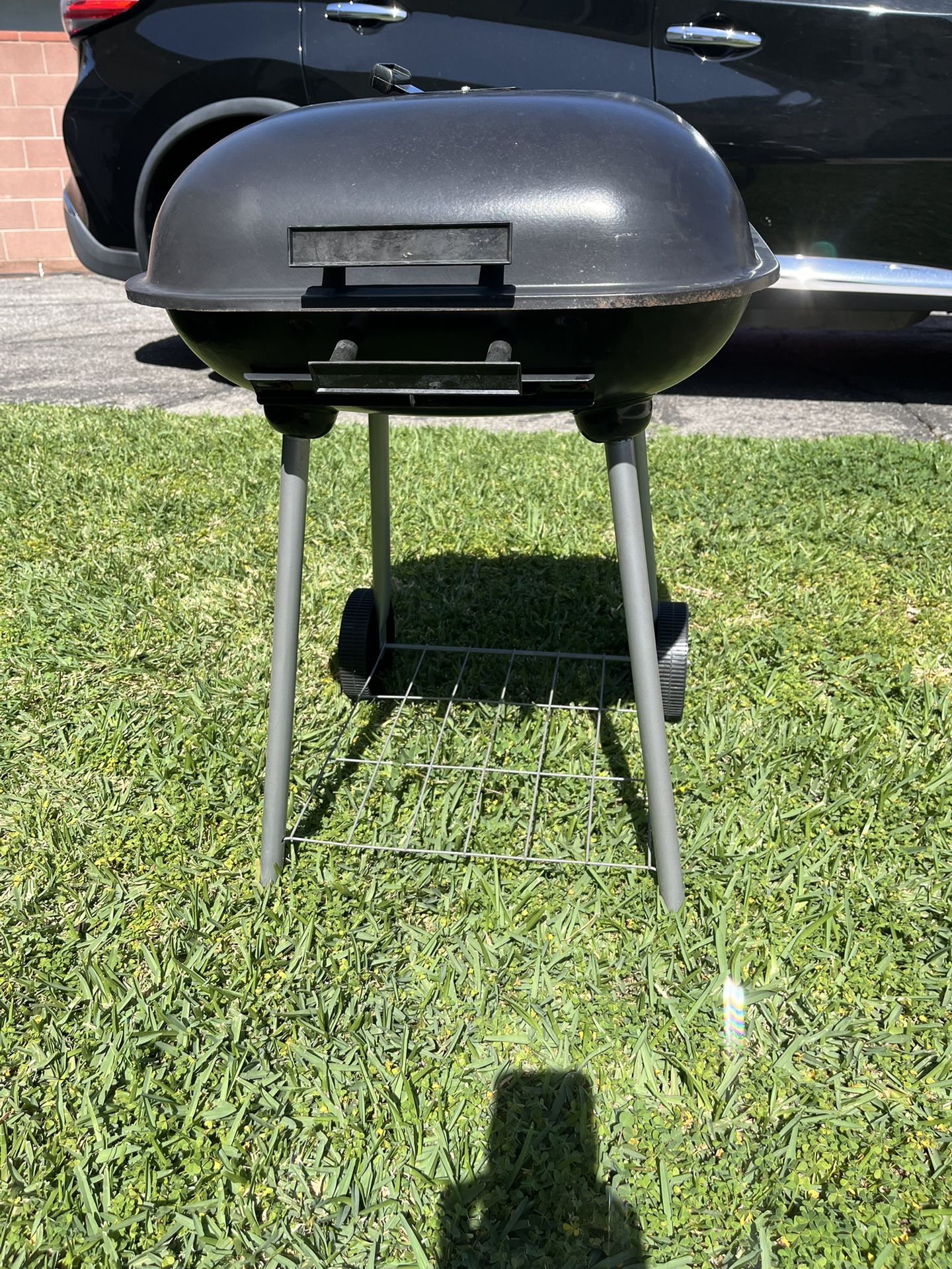 22” tall charcoal grill with a venting system . 15” x 17” grilling surface.