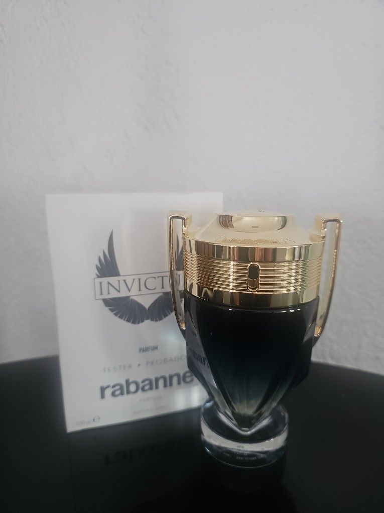 100ml parfum Blended with exceptional ingredients, Invictus Parfum is a powerful, woody-aromatic men's cologne. Fresh lavender collides with sensual black soap and addictive sandalwood in an olfactive clash for gods. The iconic Invictus trophy bottle is reimagined with a defined V-shaped silhouette and a golden cap. A celebration of the impossible feats of the hero within.