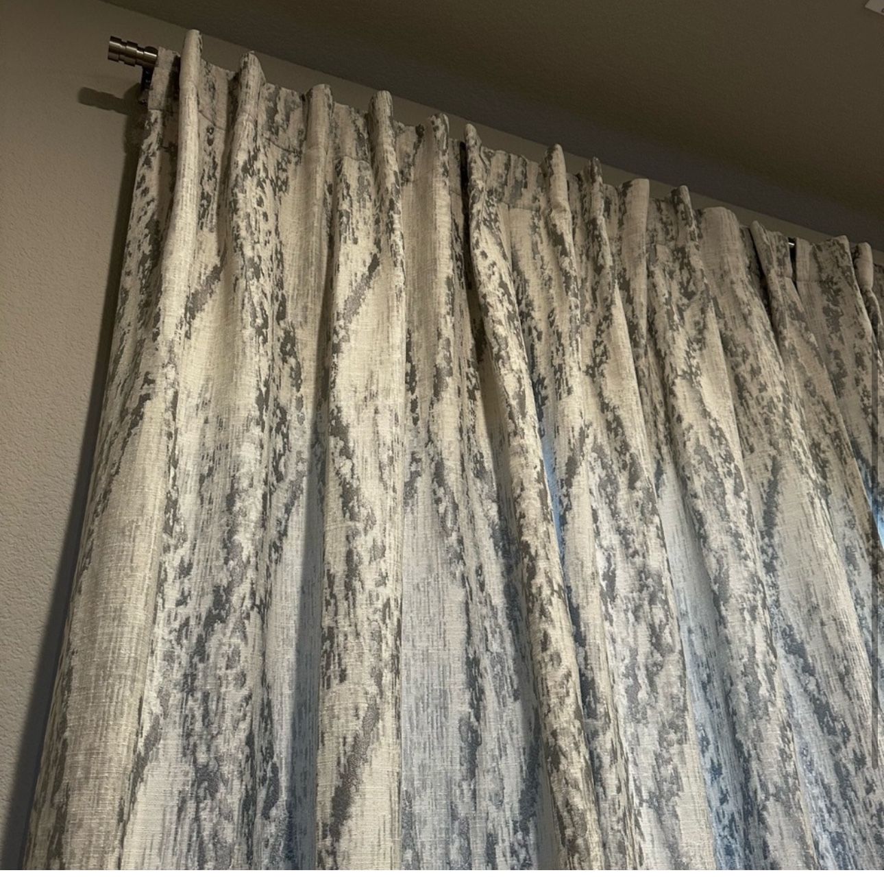 4 pottery barn, curtains, thick material, beautiful. Used briefly moved the four I am selling are put away. The four hanging I’m keeping. 50 inch wide by 108” tall No smoking home. No animals in home. Original $189 each panel Curtain rods not included