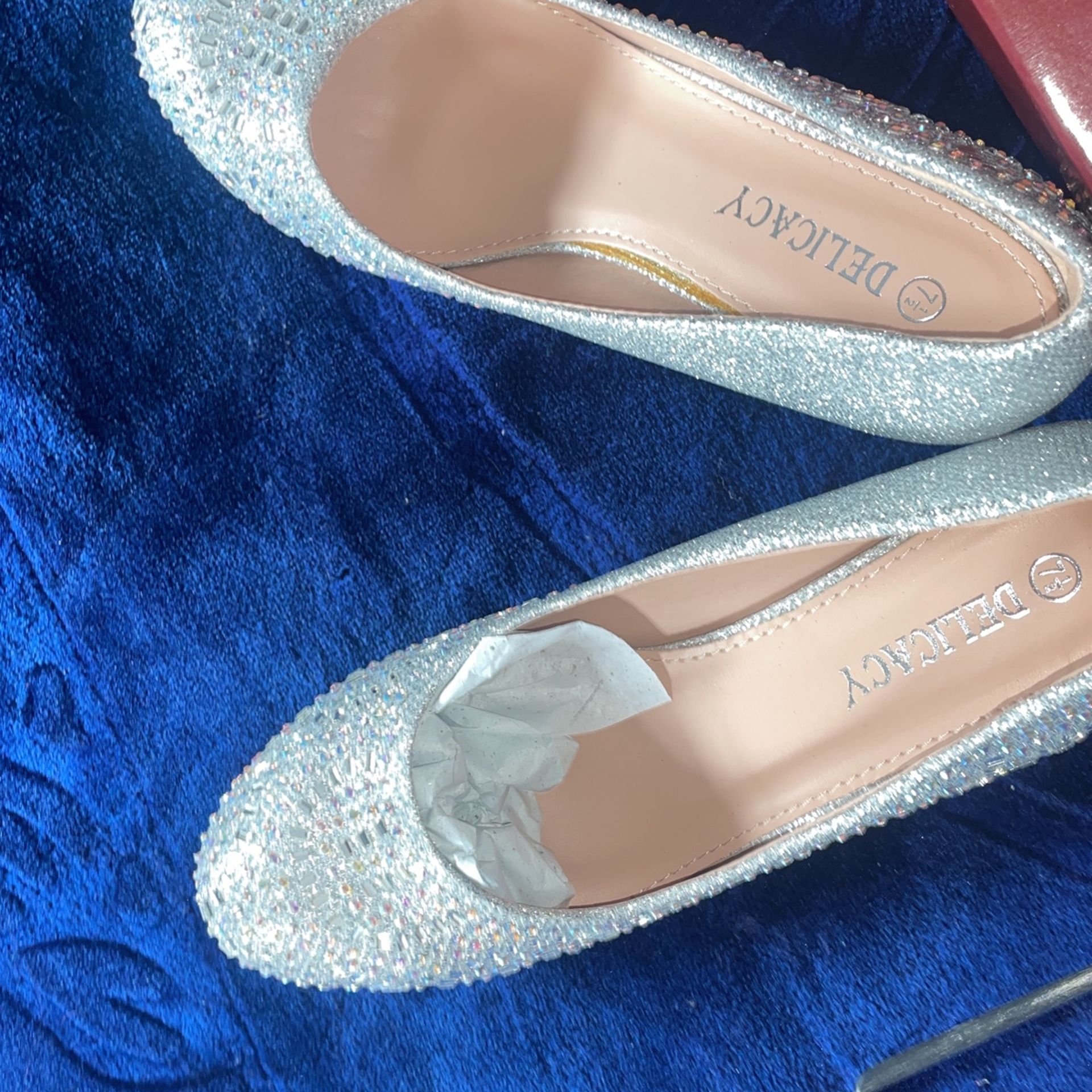 These shoes are so beautifully made and absolutely stunning. The pictures don’t do justice. They are brand new and only tried on. I was upset to see they didn’t fit. They were slightly snug. So if you have wide feet. These are not for you. #rhinestone #shoes #wedding #bridal #prom #formal #clubbing #bling