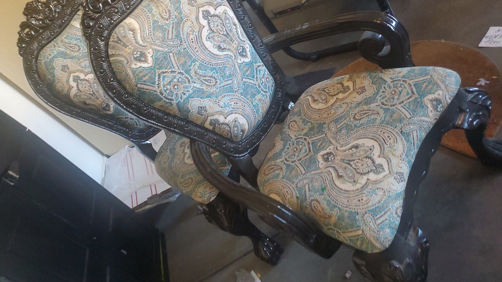4 matching chairs purchased at a yard sale re stained and re apolstered by hand I have a table as well but the table is not the same stain chairs are real wood and heavy