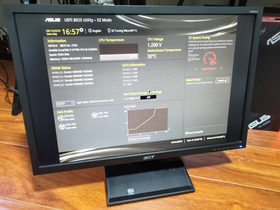 Acer V223W 22in monitor 1680x1050 resolution Inputs DVI VGA