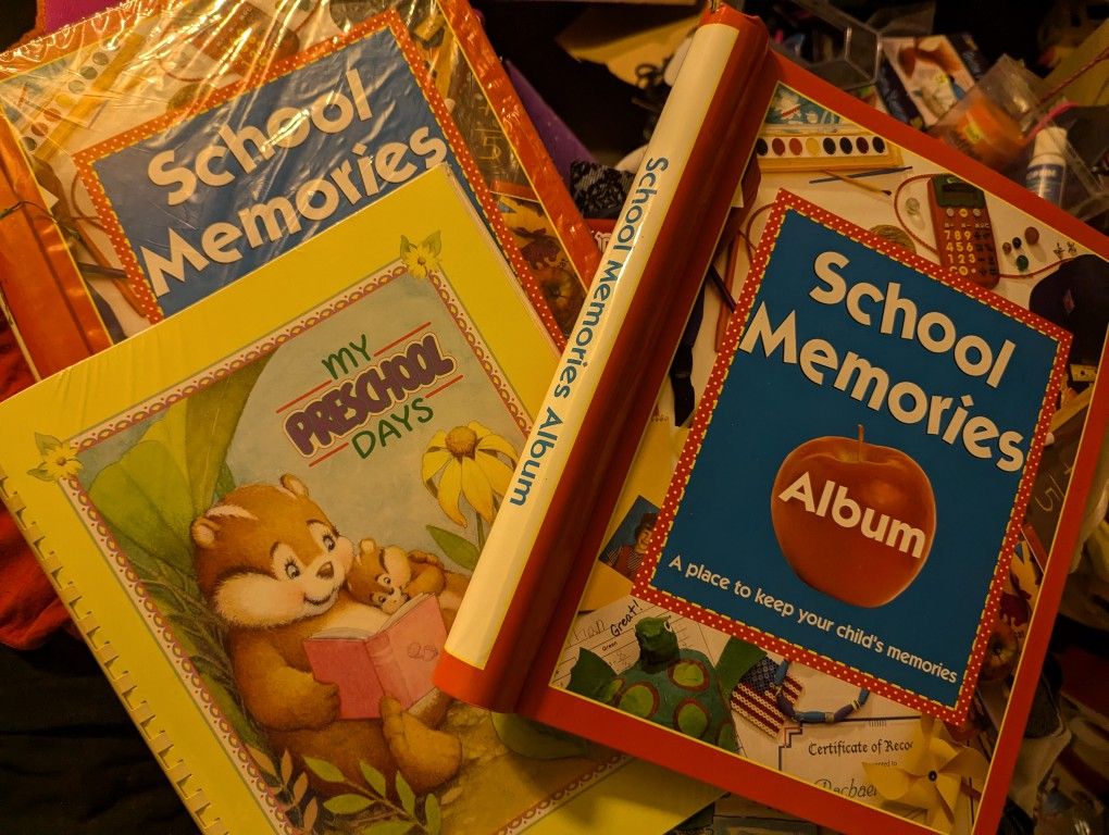 Great for memories. Preschool book, new and still in plastic wrap. 2 School memories book, one new and still in plastic wrap and one new with no writing. Price includes all three books. Local pickup or shipping.