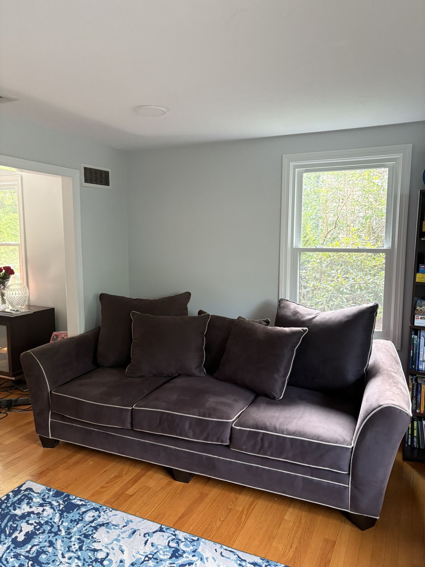 Large Raymour & Flanigan Briarwood Sofa – Excellent Condition – $500 OBO This is a large, high-quality Raymour & Flanigan Briarwood sofa in excellent condition. No stains, no rips, no pet hair. Only 3 years old and very well cared for. Color: Grey/brown brushed fabric with grey trim Dimensions: 102” wide × 45” deep × 43” high Condition: Clean, smoke-free, pet-free home Notes: One of the large pillows will be included (currently being picked up, available tomorrow). Pickup: Located in Needham. You will need a truck or large van. We can assist with loading. Local delivery available for an additional fee.