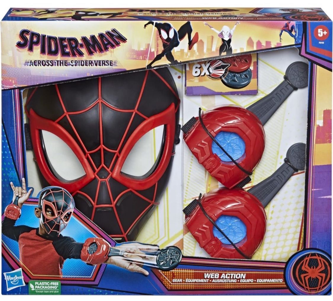 Brand New! Spider-Man Marvel Across The Spider-Verse Web Action Gear, Miles Morales Costume Mask and Gauntlets, Super Hero Toys for 5 Year Old Boys
