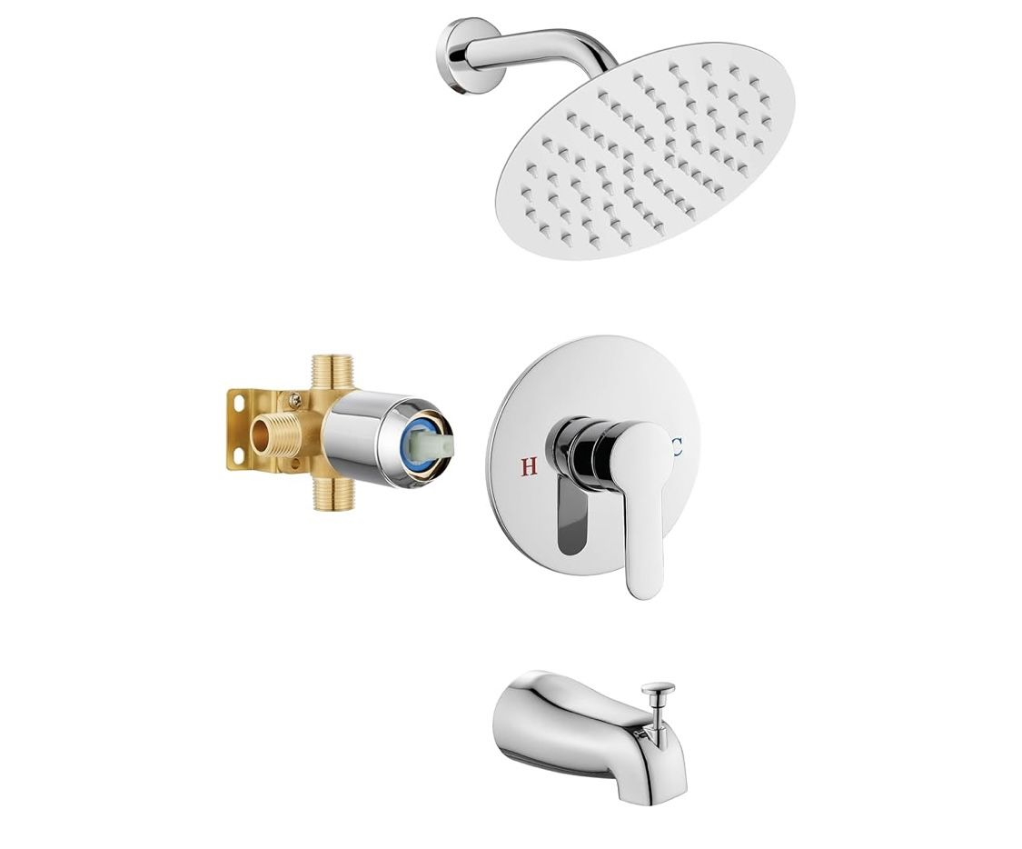 Airuida Shower Faucet Set with Tub Spout,Bathtub Faucet Set Complete,Round Rainfall Shower Head,Tub and Shower Trim Kit with Solid Brass Rough-In Valv