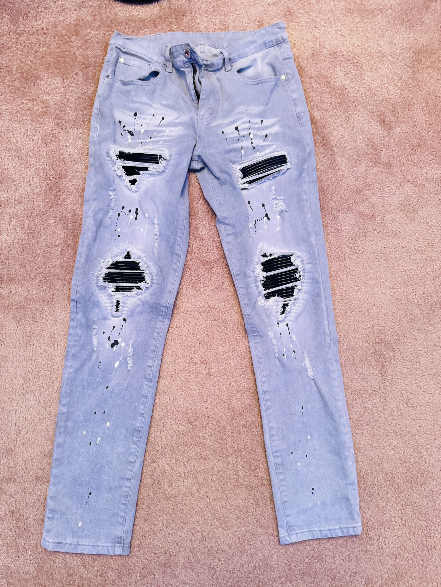 Jeans for 20 bucks cash only pick up only size 30 the color is gray with black and white