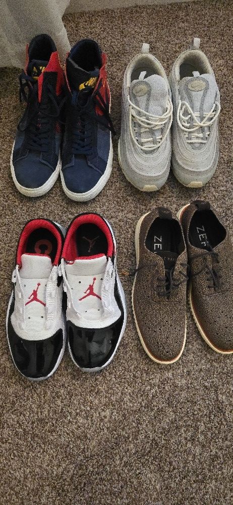 Im selling four pairs of Men's shoes. The sizes are on the picture. The shoes are in very good condition. Cole Haans - $40.00 NIKE Skater Sneaks - $30.00 NIKE Air Max - $35.00 NIKE Jordan's $60.00