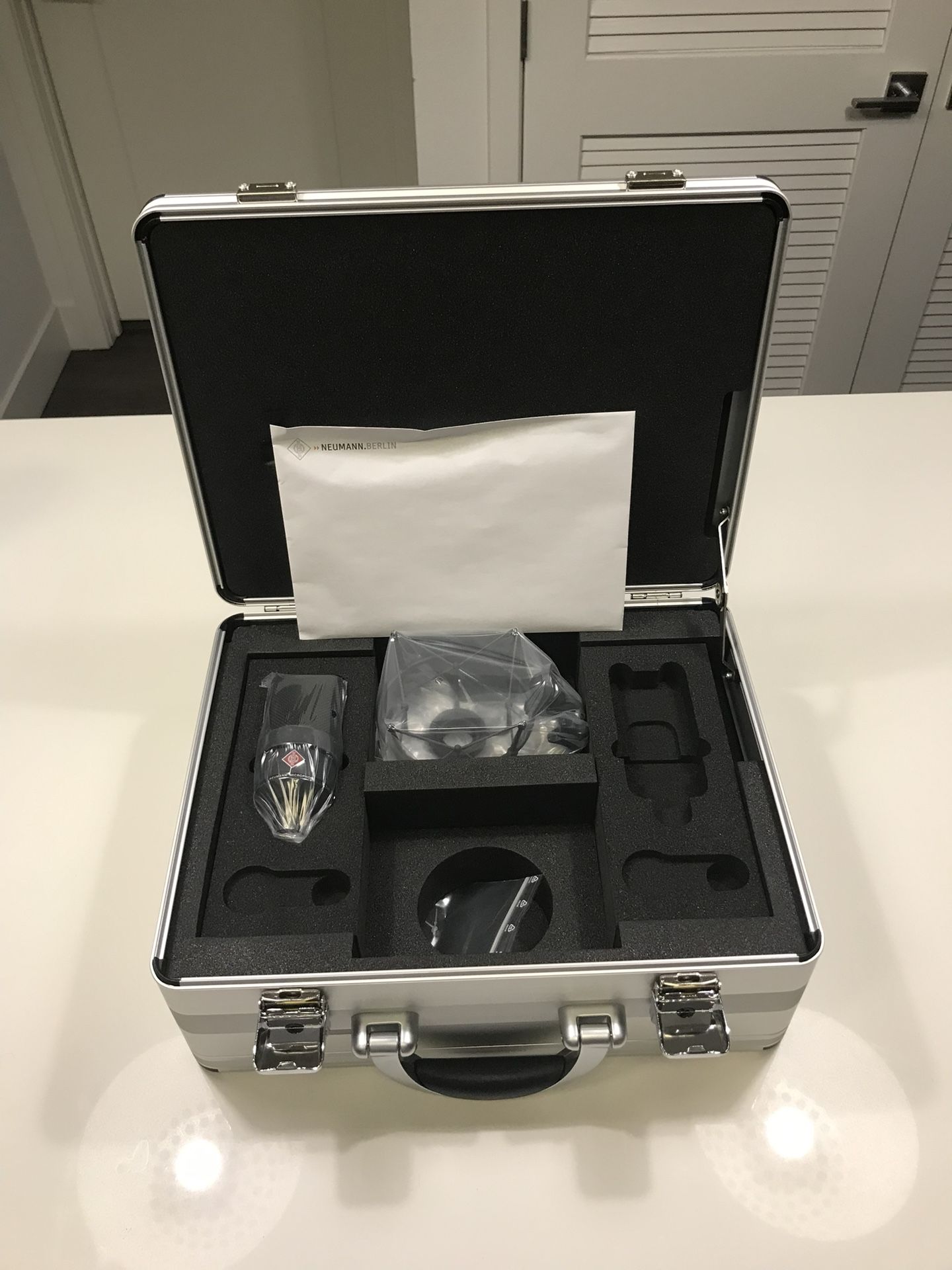 Selling my mint TLM 103 anniversary edition in matte black. The set includes the microphone itself, shock mount, manufacturer’s envelope, and the Neumann case with keys. In general, the microphone has impressively low self-noise. Sound wise, it is inherently bright but not harsh like cheaper condensers. I’ve used it sparsely, but had great results when pairing with a darker preamp or running it straight into an Apollo (slight 7k eq cut and de-esser). Selling this and a few other items in hopes to upgrade to one of Neumann’s “U” series mics. I purchased this set directly from an official distributor and still have the original shipping box.