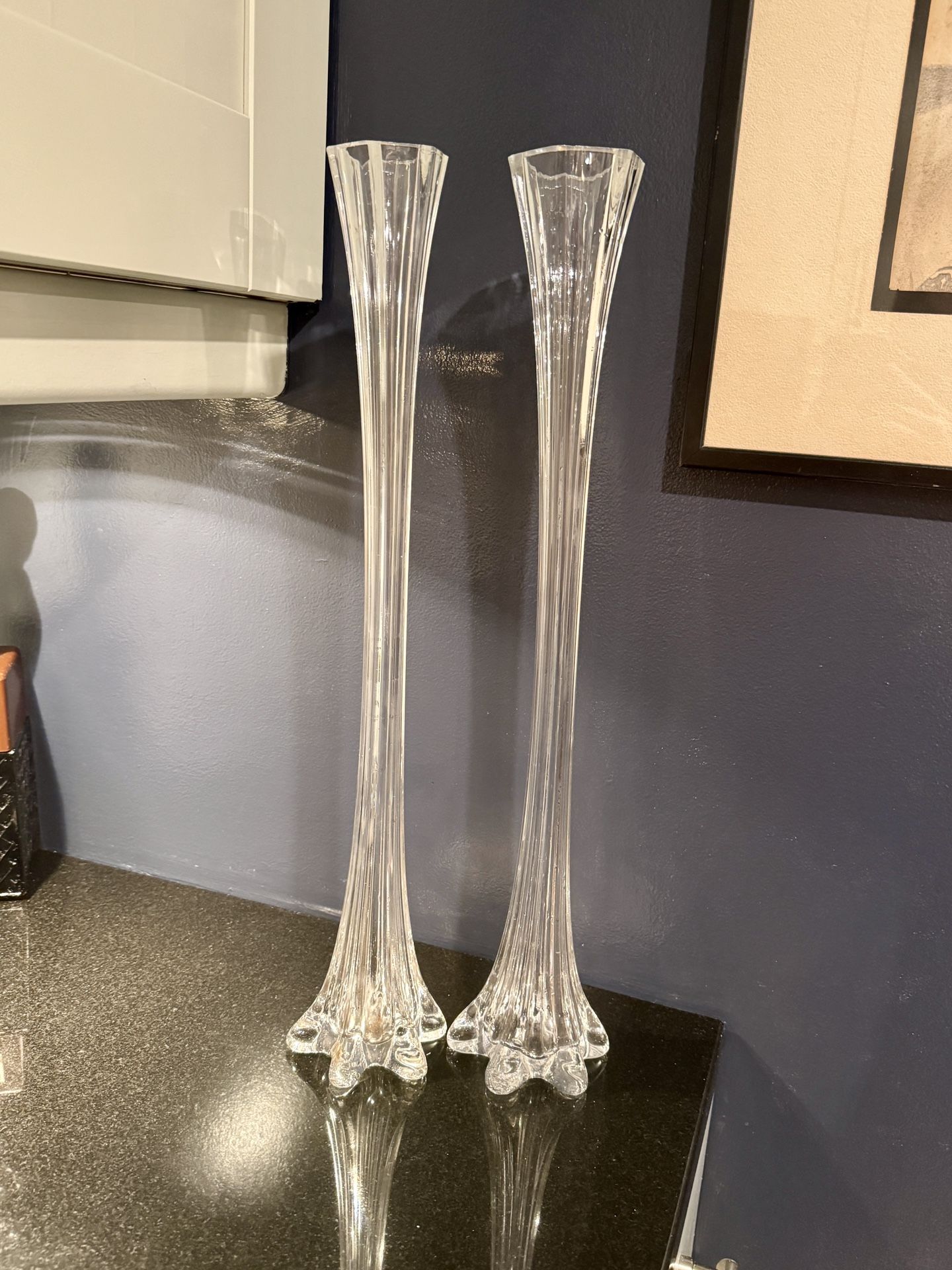 Woah! These are huge! Giant 19.75 and 19.25 inch vases, very close but not identical. Small, very hard to see chip on taller vase (pictured) $40 OBO is price for the pair.