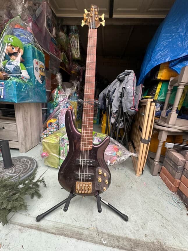 Comes with the stand and also the cable. It’s basically brand you just dusty and the guitar is missing a string. Free for offers!