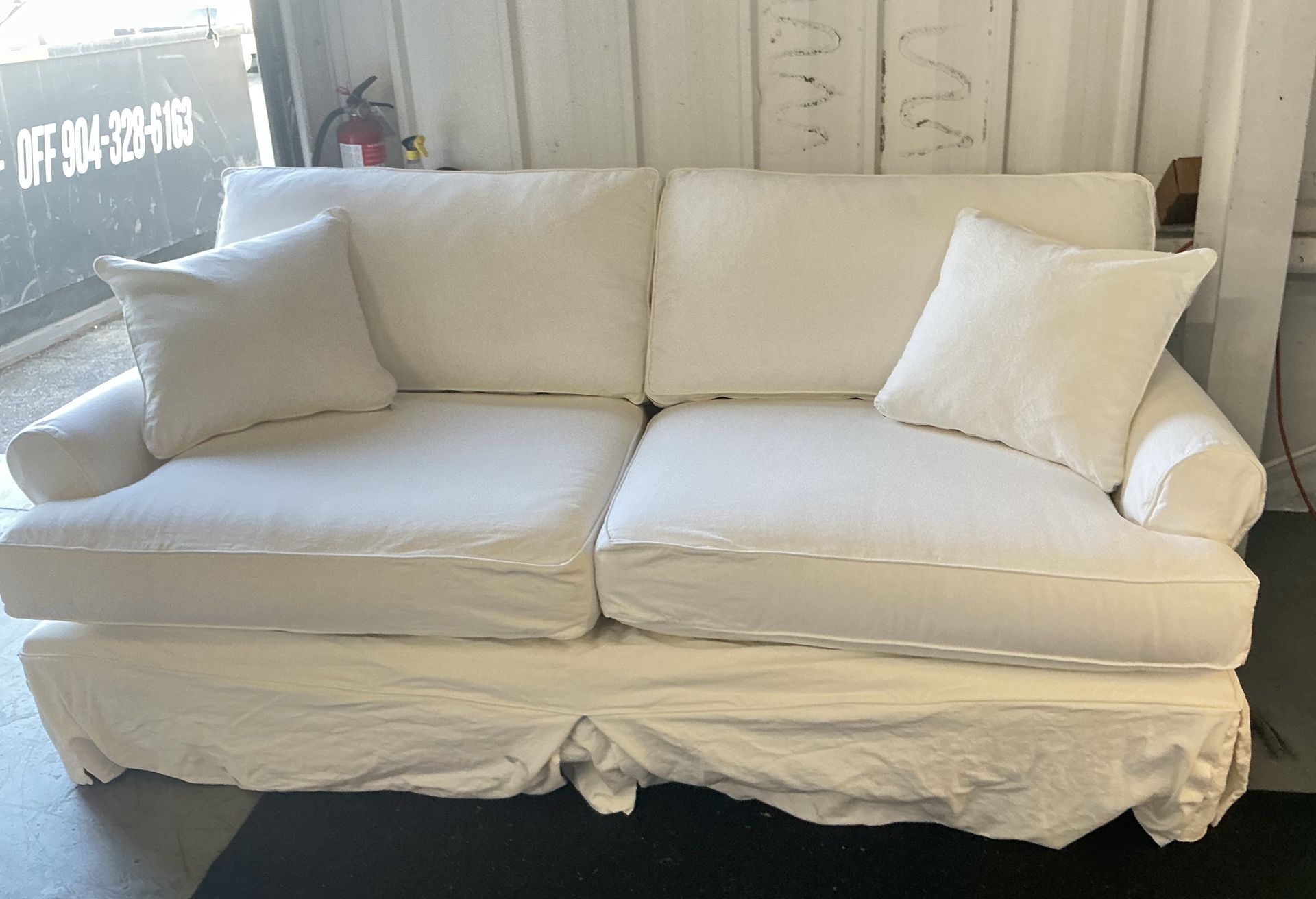 White Slipcovered Sofa