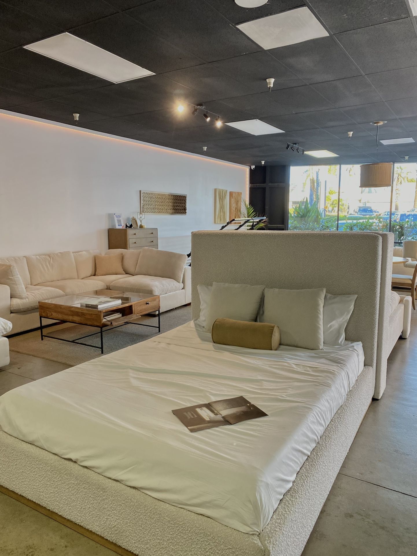 Upgrade your bedroom with this brand-new bouclé bed frame featuring a tall, one-piece curved headboard and warm wood trim for a modern, high-end look🌟. Why Buyers Love It: • Brand new with warranty included • 56” tall one-piece solid headboard (no weak panels) • Upholstered in natural white bouclé fabric – soft, cozy, modern • Curved headboard with natural wood trim for a warm, elevated look • Low-profile base helps reduce dust buildup • Mattress-ready slats – no box spring needed • Available in Queen & King sizes Extra Perks: • 💳 Buy Now, Pay Later options available • 🚚 free local delivery (Chula Vista & San Diego area) 📍 Visit our local showroom or 💬 Message us now for availability, sizing, or exclusive online pricing.