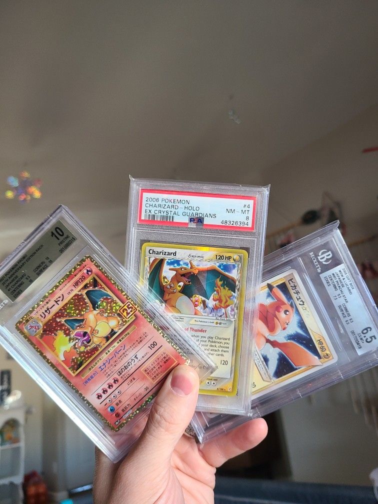 Bgs 10 Charizard 25th Anni Jpn , 6.5 Bgs Jpn Gold Star Pika, Psa 8 Ex Crystal Guardian Charizard
