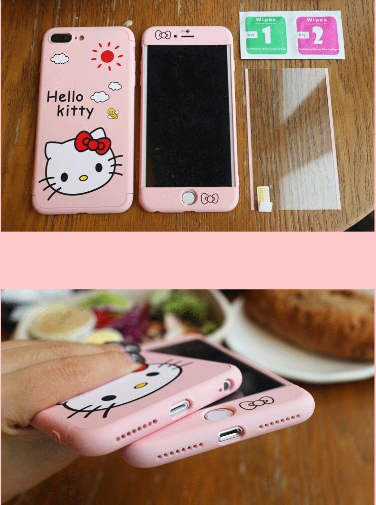 Luxury 3 in 1 Full Body Protective Cover Glass Case For iPhone 6 6s Plus 7/8 plus Cartoon Videos Hello Kitty Hard PC Scrub Case Back $10/1pc