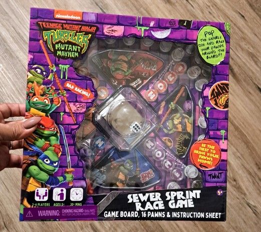 Teenage Mutant Ninja Turtles "Mutant Mayhem" Sewer Sprint Race Game It's the pop-o-matic "Trouble Game" but Ninja Turtle Style! See photos. New