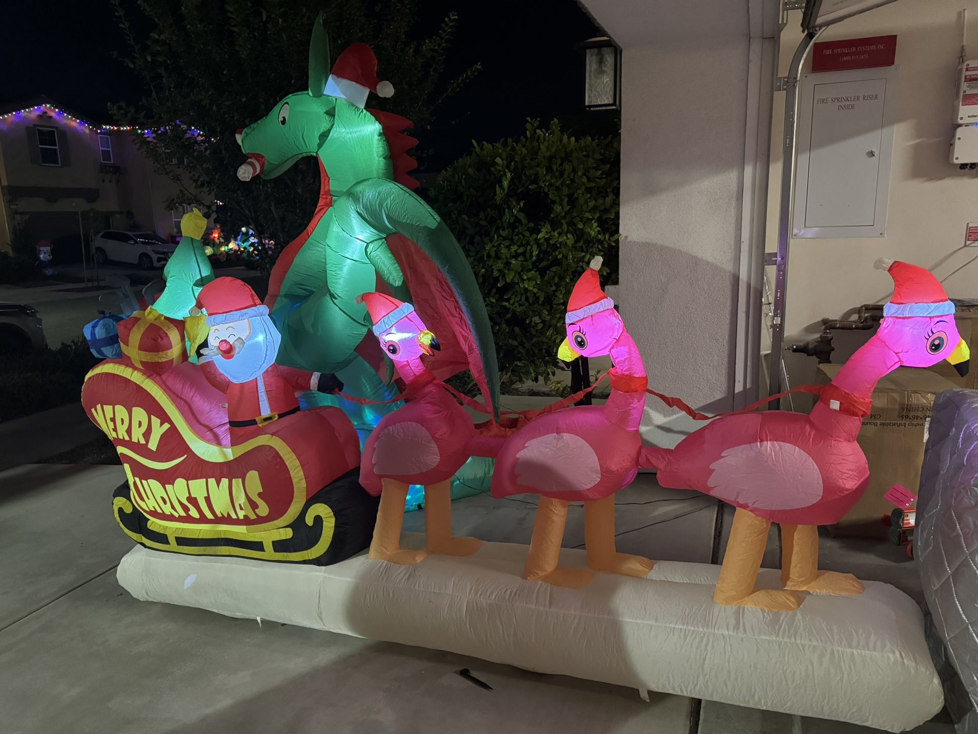 Christmas decor Santa sleign with Flamingo inflatable decor