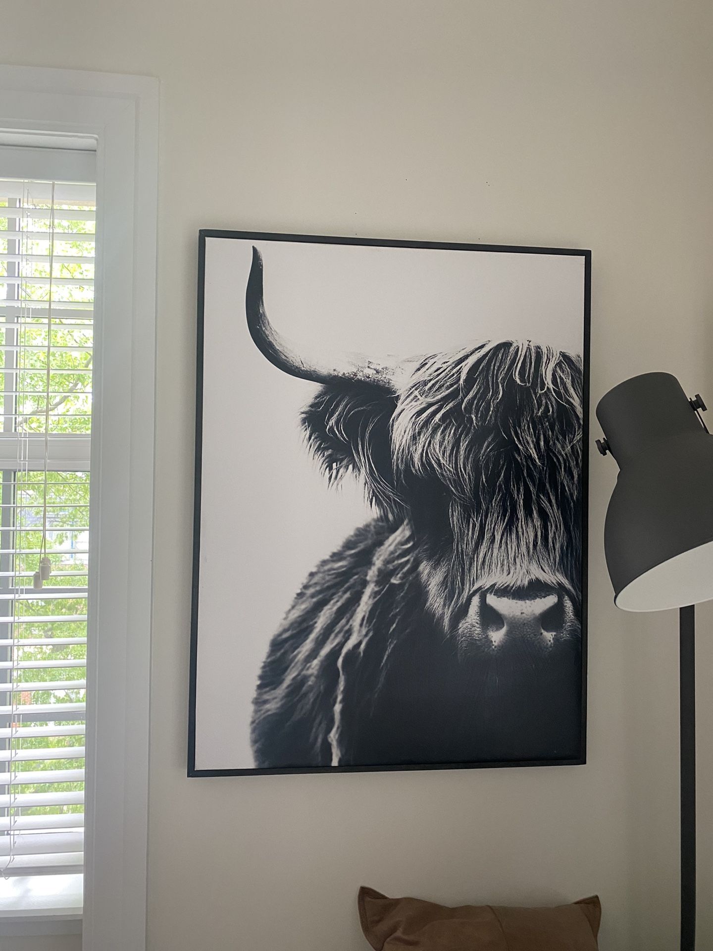 Like new. Framed canvas bull wall art. Currently selling In stores for $130-150.
