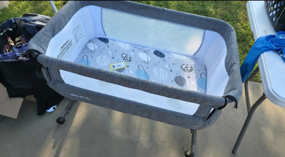 Gently used, clean, and in great condition! Adjustable height Fits snug next to the bed Mesh sides for airflow and visibility Neutral color to match any room Perfect for keeping baby close and safe at night. Just trying to clear space and help cover bills this month π Pickup near Bixby. First come, first served! π© Message if interested or want more pics.