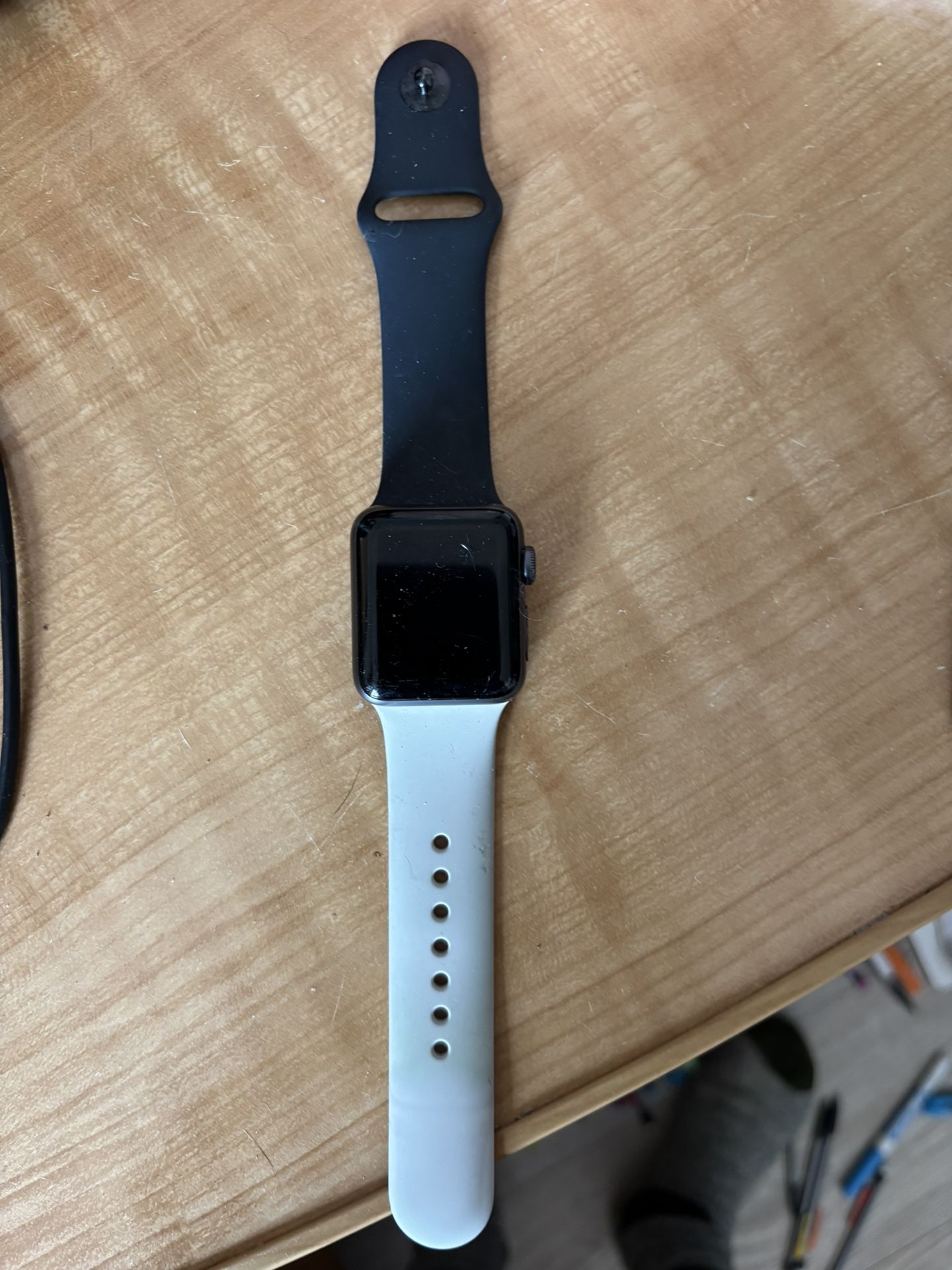 PLEASE READ!!!!!! Good working IPhone apple watch series 3 38mm. It has scratches but not noticeable when watch is on. It works perfectly no problems with it. I just don’t use it as much since I got an upgrade. It doesn’t come with a charger. Willing to negotiate price but no lower then $55.