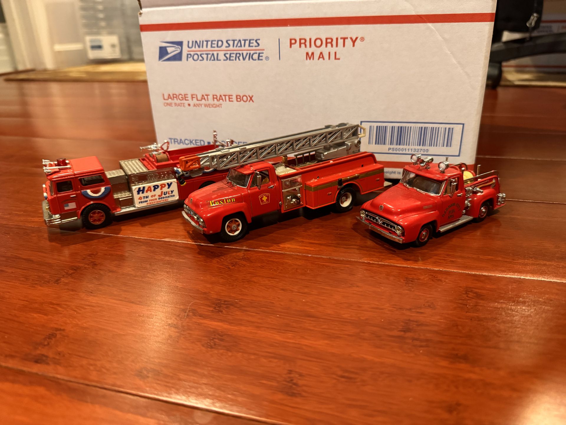 Corgi Mack Matchbox Yesteryear Ford Diecast Fire Trucks $10 each, 2 for $15, 3 for $20. Middle one broken wheel