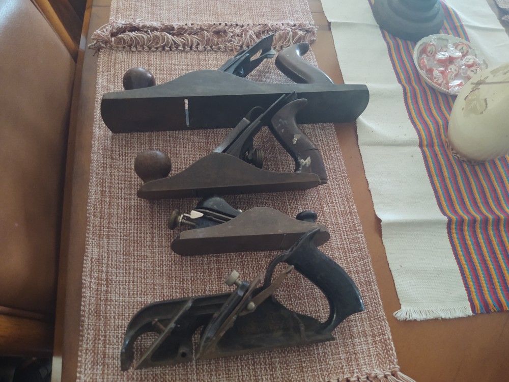 A Stanley model 78 , a small Stanley not sure of the model, the large plane is a Sargent and the medium is a Bailey. They are all complete and in nice shape