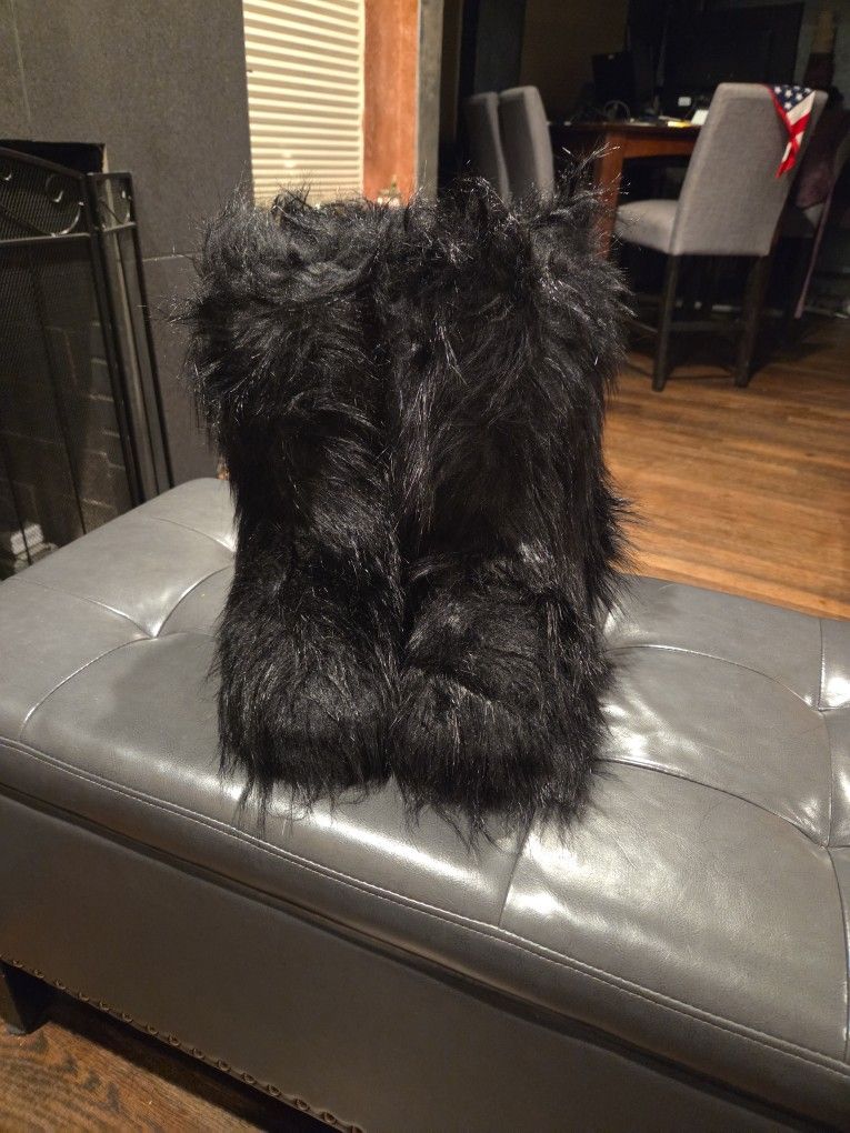 Brand new black fuzzy boots size 7 (38) Indoor outdoor cushion inside