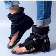 Free People 39 8.5-9 Marlo Boot Black Suede Thong Sandals Shoes made in Spain