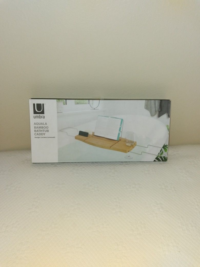 Umbra Bamboo bathtub caddy. New in box. Awesome for reading, relaxing in the tub!!