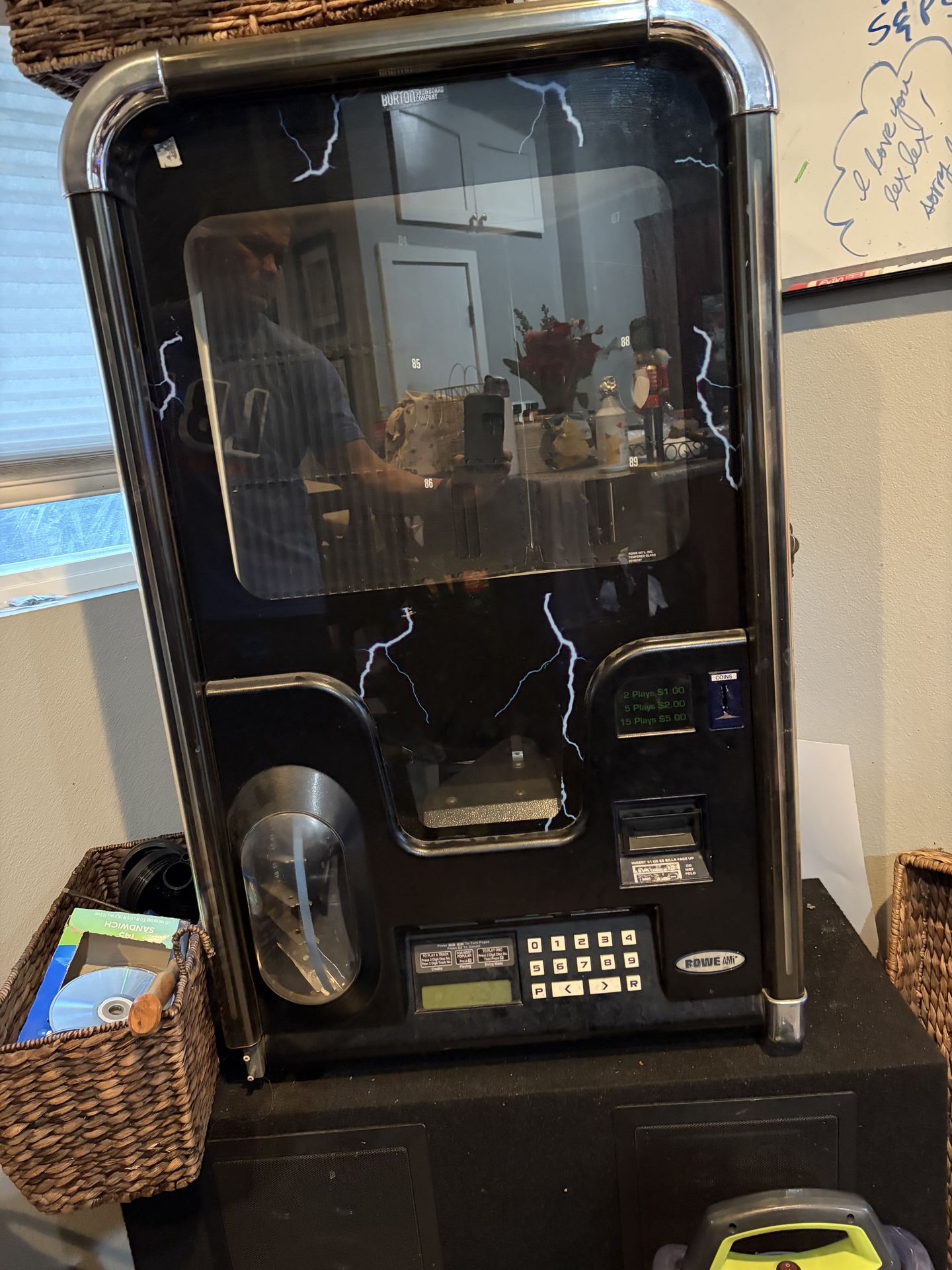 Rowe AMI WP-100 CD Storm Wall Mounting Jukebox. All cd’s in jukebox included. Not working and not sure why, it did work. I don’t have the time to get it fixed or looked at.