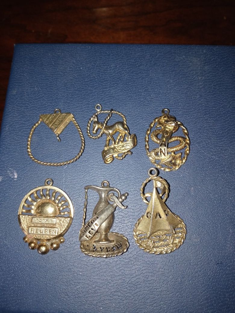 6 of the 12 Tribes of Israel charms over 24 grams!!!!! Most likely all gold-plated Unsure if any are solid gold So asking $125 take all.