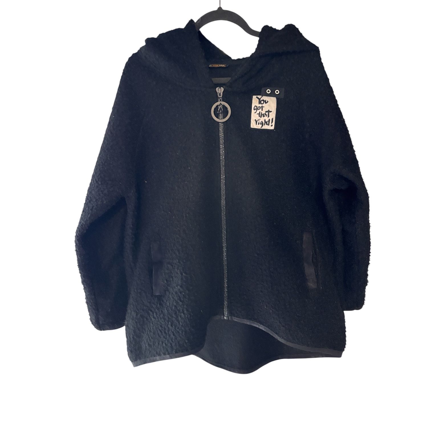 Black hoodie - cozy sherpa or faux shearling fleece jacket